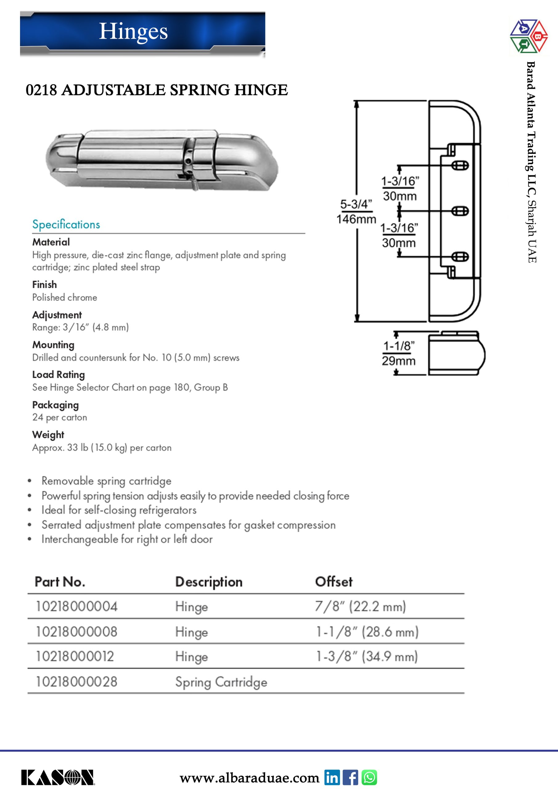 SKU: 0218 ADJUSTABLE SPRING HINGE