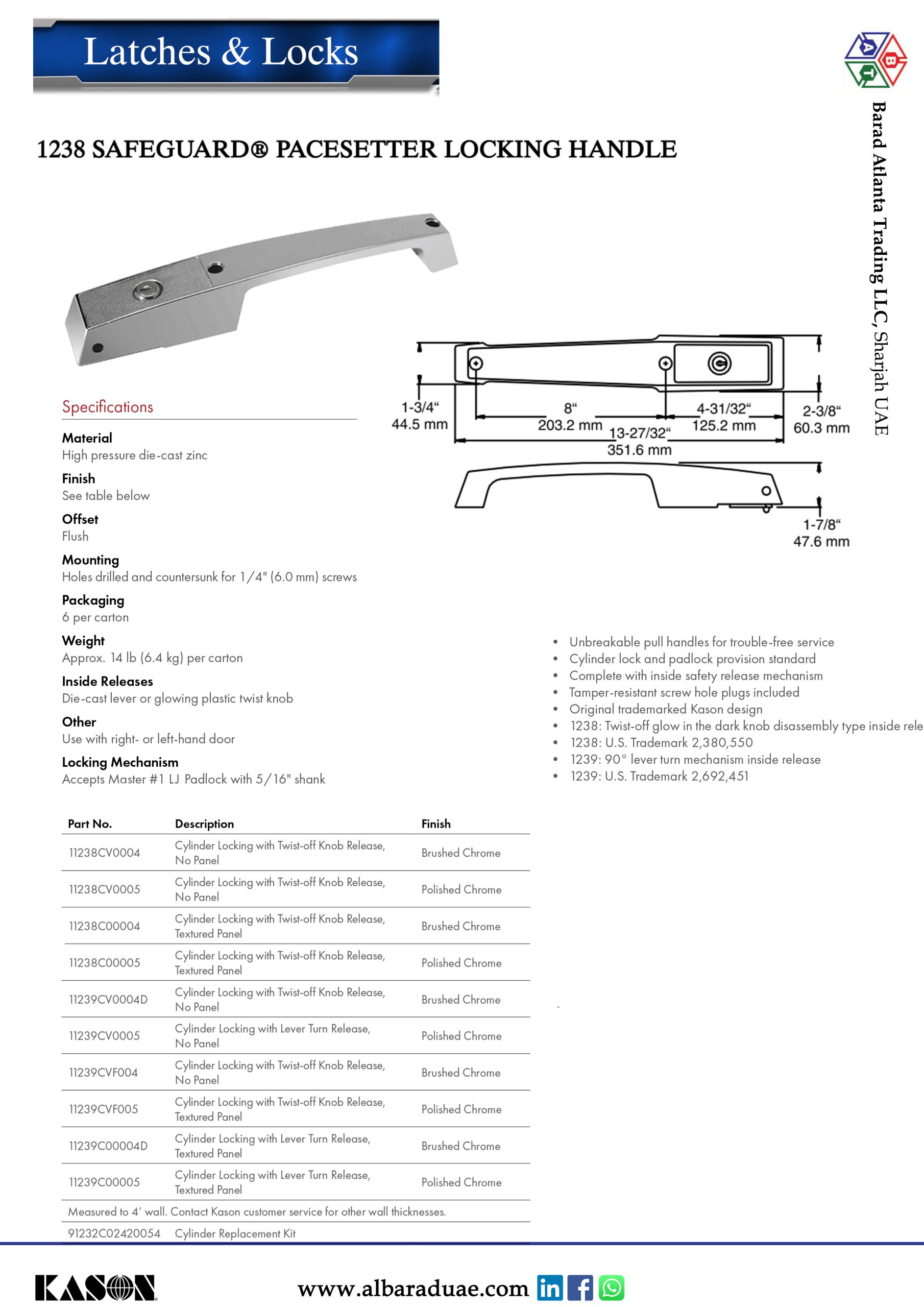 SKU: 1238 SAFEGUARD® PACESETTER LOCKING HANDLE