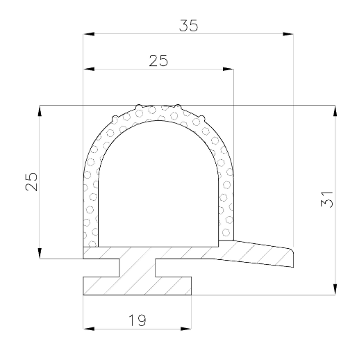 Perimetral gasket h=25 for door thk=92-151 - 18mtr long quantity