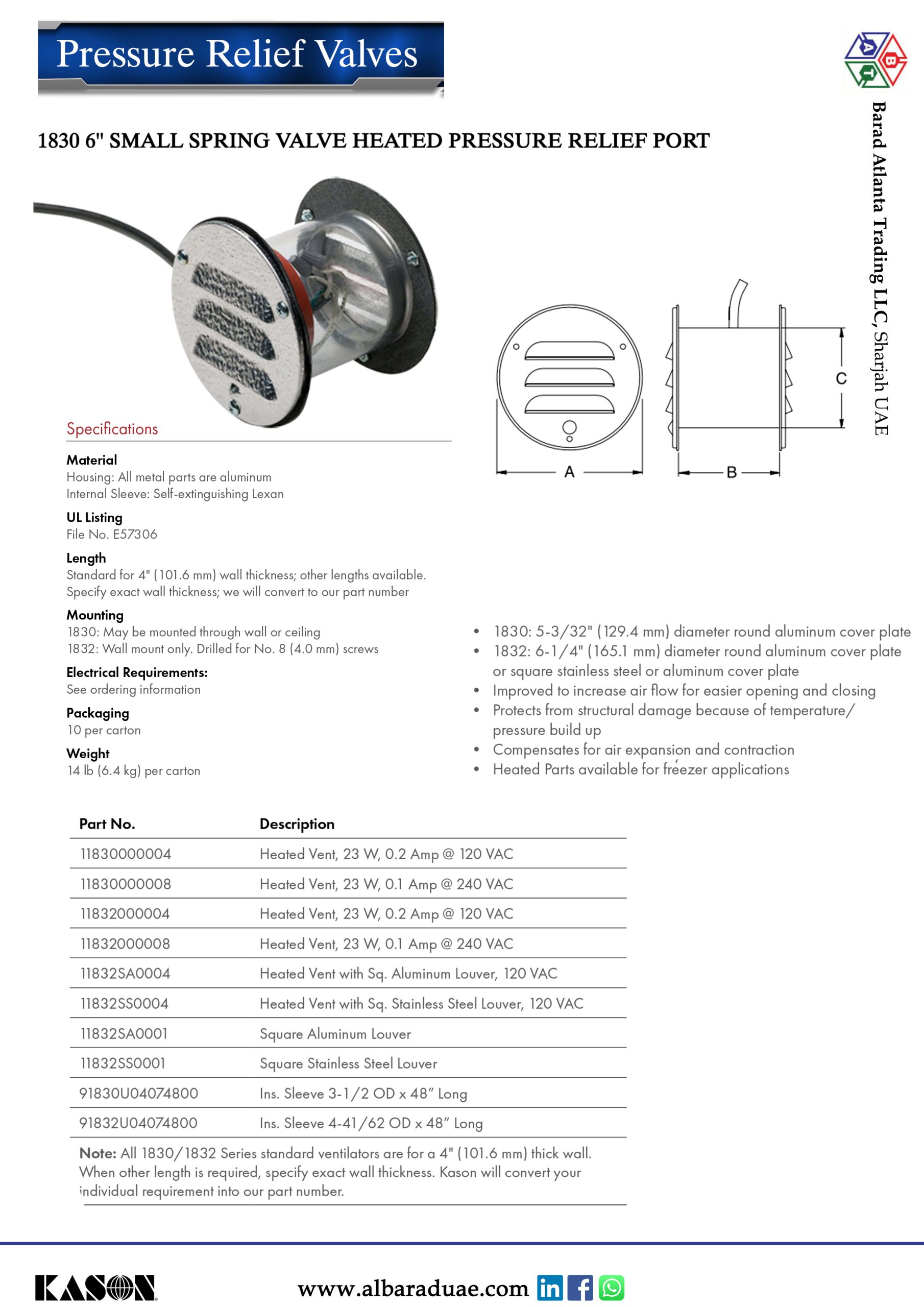 SKU: Pressure Relief Port KASON 1830 6” Categories: , , Brand: