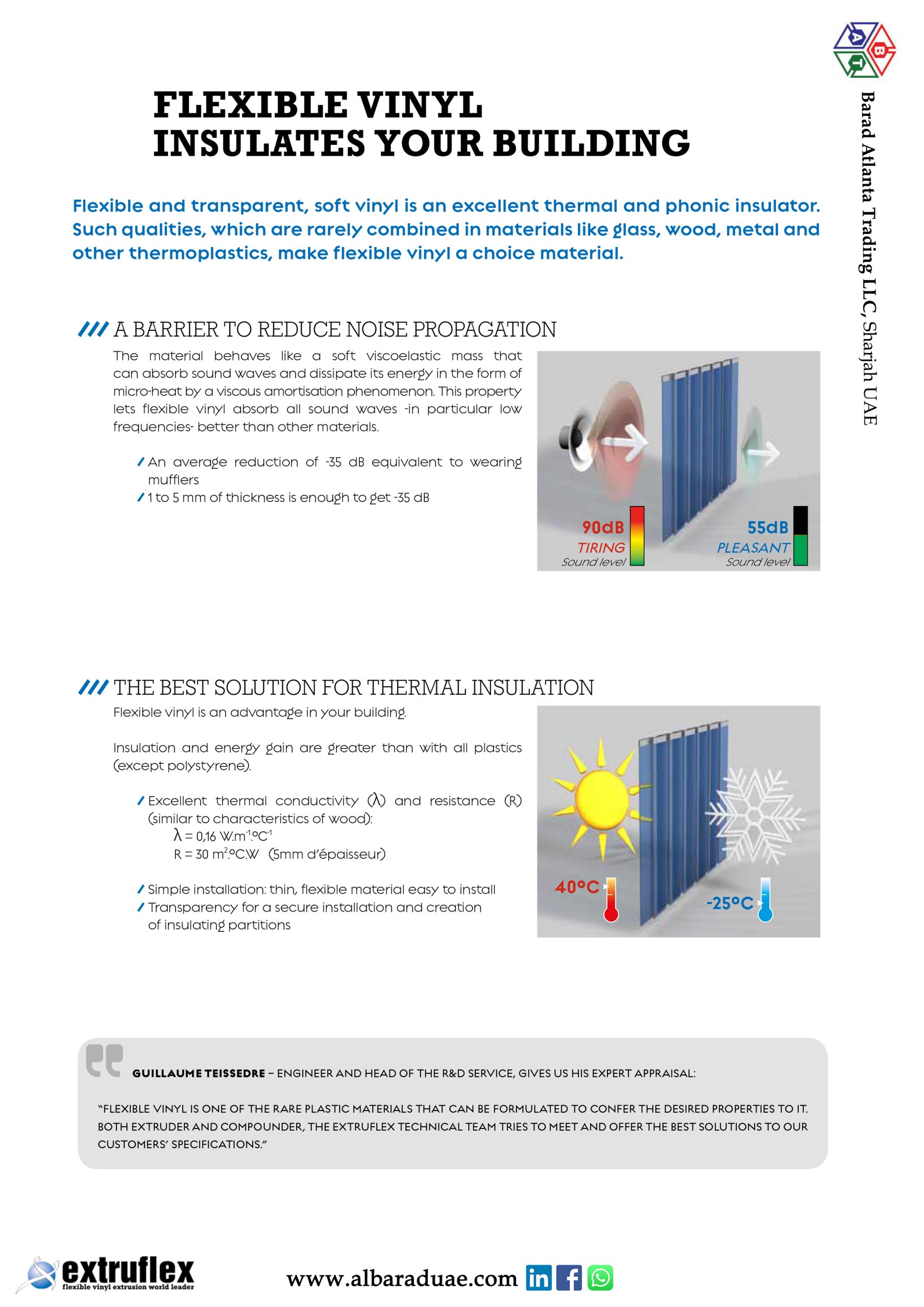 Polar PVC is recommended for many applications but mainly for manufactured strips doors, curtains doors and partitions used in cooling rooms, cold storage, refrigerated trucks, restaurants, dairy chillers and any food service environments.